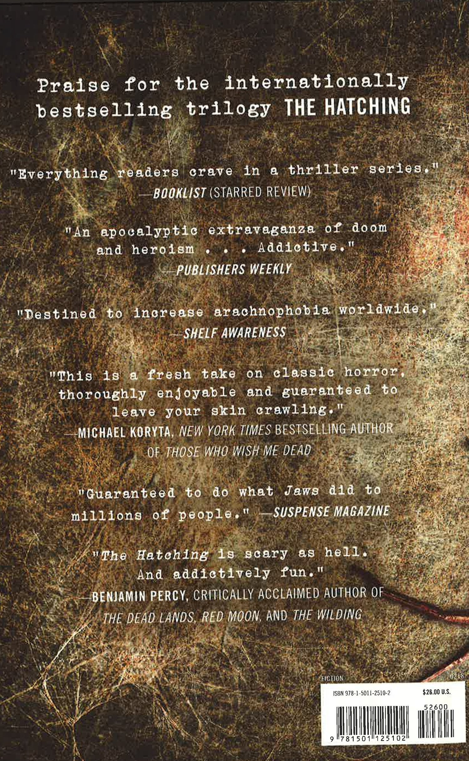 In the thrilling, nerve-wracking finale of Ezekiel Boone's "hair-raising" (Parade) Hatching series, the United States goes to war against the queen spiders that threaten to overtake the human race forever. The world is on the brink of apocalypse. Zero Day has come. The only thing more terrifying than millions of spiders is the realization that those spiders work as one. But among the government, there is dissent: do we try to kill all of the spiders, or do we gamble on Professor Guyer's theory that we need to kill only the queens? For President Stephanie Pilgrim, it's an easy answer. She's gone as far as she can--more than two dozen American cities hit with tactical nukes, the country torn asunder--and the only answer is to believe in Professor Guyer. Unfortunately, Ben Broussard and the military men who follow him don't agree, and Pilgrim, Guyer, and the loyal members of the government have to flee, leaving the question: what's more dangerous, the spiders or ourselves?