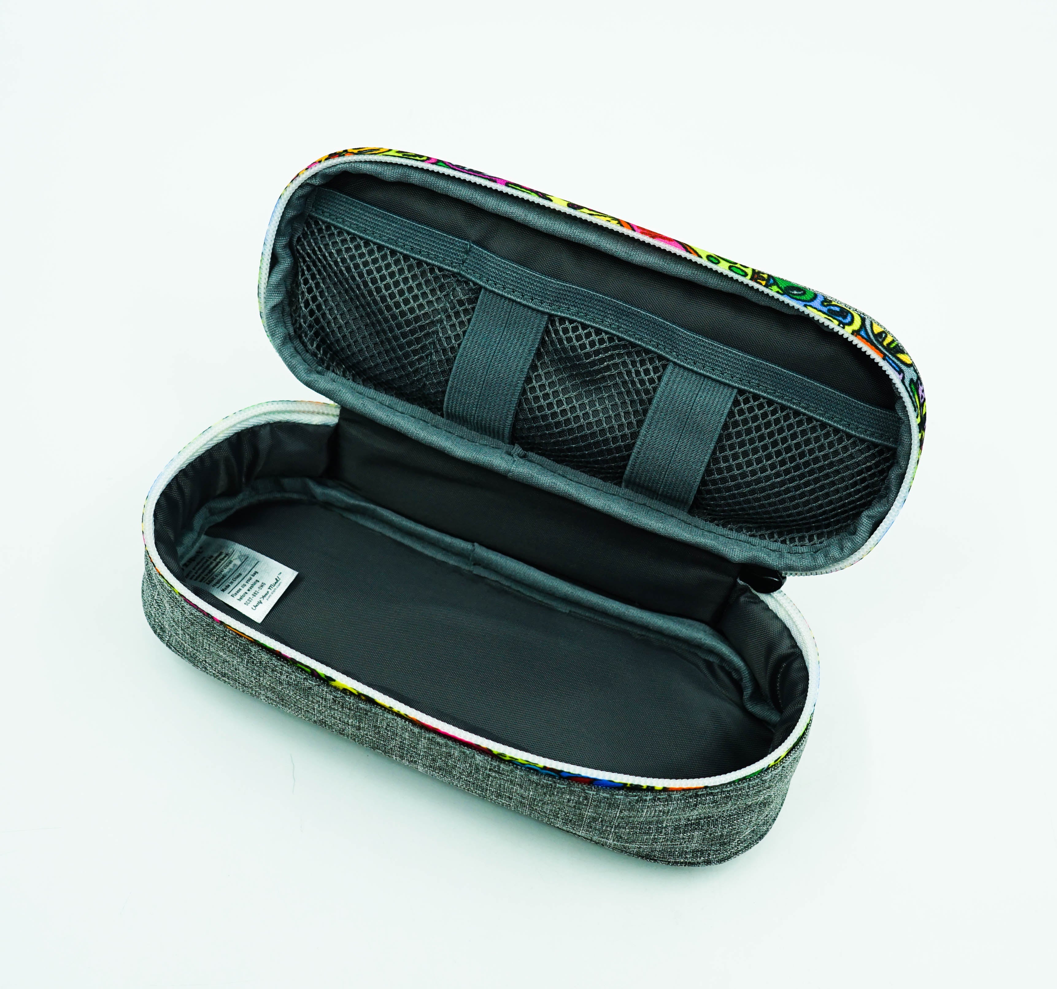 URBAN, MULTI-PURPOSE DESIGN - This versatile pencil box boasts a custom print featuring a host of colorful, zany characters. It has a roomy main compartment and a mesh inner organizer ideal for storing earbuds, cords and chargers. The extra-wide, zippered opening provides easy access to tech gear, school supplies, makeup and anything else you have stored inside.