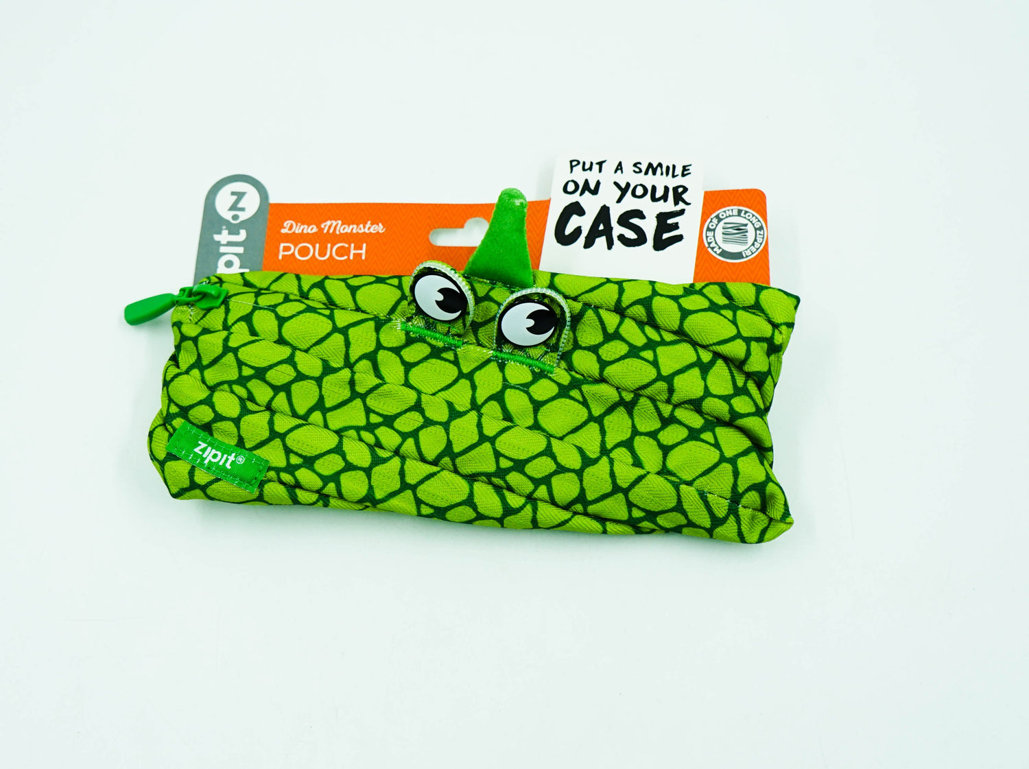 MADE FROM ONE LONG ZIPPER - The Dino pencil case is fantastic whether it’s fully zipped for practical storage, or unzipped for hands-on fun. Measuring 8.66''x0.79''x3.94'' / 22x2x10cm, it’s made with an extra wide diagonal opening so it’s easy to find exactly what you’re looking for. UNIQUE, MULTI-USE DESIGN - Designed to hold up to 30 pens and pencils, this pencil bag has room for all your daily essentials. Fun dinosaur-inspired details will surprise and excite reptile lovers of all ages. SAFE & DURABLE - Purchase your pencil pouch with confidence as it complies with all applicable product safety rules. It’s tested for compliance by a CPSC-accepted accredited laboratory and carefully created using durable polyester for years of practical use. MACHINE WASHABLE - For ease of care, we’ve ensured this cute pencil case is fully machine washable on gentle cycle. It’s carefully made to provide you with years of practical use. LIFETIME WARRANTY - ZIPIT offers lifetime warranty against any manufacturer’s defects. Register your purchase on our website to quality for this great offer. Our award winning one-zipper pencil pouch gets a prehistoric makeover with a scaly print and soft green spikes. Bright eyes and white zipper teeth will be there to greet you every day when you use this cute pencil case to store all your essentials. The extra wide diagonal opening makes it easy to access even the smallest items stored inside. This pencil case for girls and boys is machine washable and measures 8.66''x0.79''x3.94'' / 22x2x10cm. The sturdy polyester construction and smooth, quality zipper hold up well to daily use. Here’s a few storage suggestions to get you started: Up to 31 pens and pencils Glue sticks, scissors and craft supplies Tech gear, cords and accessories Jewelry or other personal items Makeup, change and more Adorable dino-inspired spikes and a scaly green print add visual appeal to this practical storage pouch. It’s made of one long zipper so you can unravel it just for fun. Zipped up it’s all business as this roomy pouch stands ready to store all your favorite items.