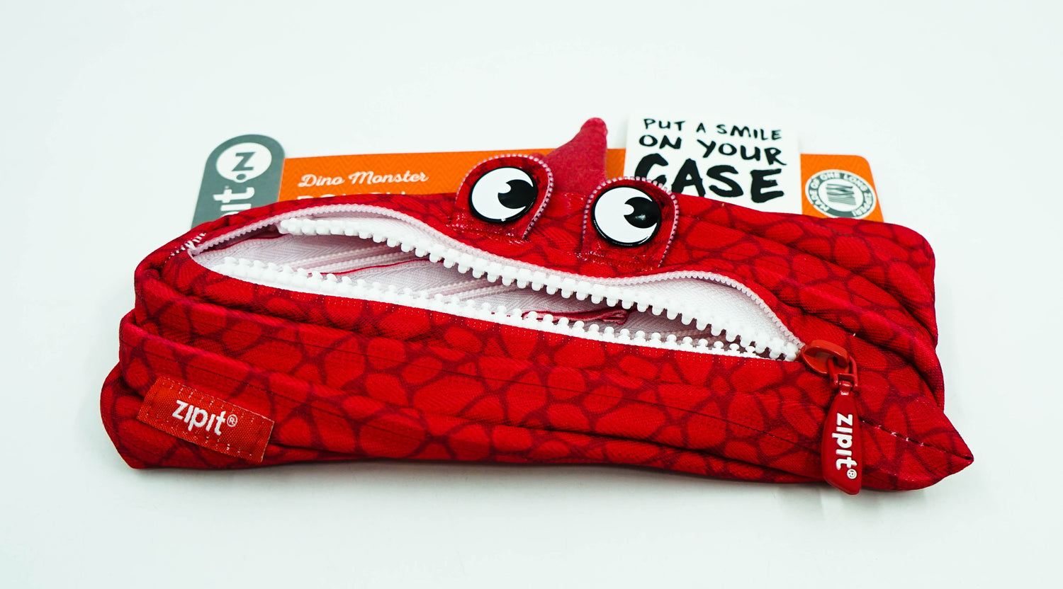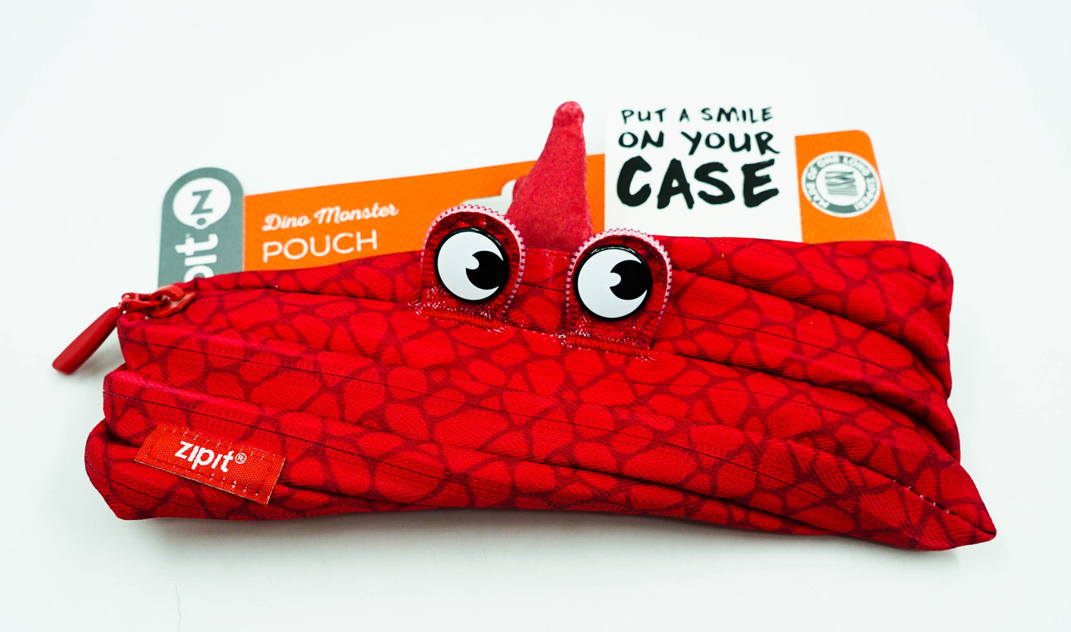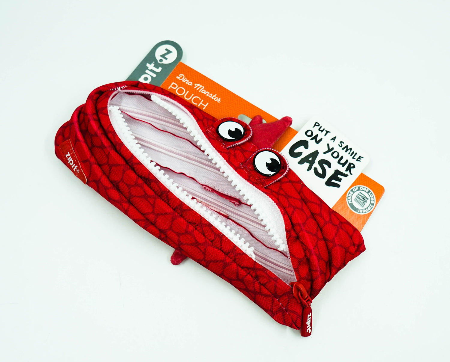 MADE FROM ONE LONG ZIPPER - The Dino pencil case is fantastic whether it’s fully zipped for practical storage, or unzipped for hands-on fun. Measuring 8.66''x0.79''x3.94'' / 22x2x10cm, it’s made with an extra wide diagonal opening so it’s easy to find exactly what you’re looking for. UNIQUE, MULTI-USE DESIGN - Designed to hold up to 30 pens and pencils, this pencil bag has room for all your daily essentials. Fun dinosaur-inspired details will surprise and excite reptile lovers of all ages. SAFE & DURABLE - Purchase your pencil pouch with confidence as it complies with all applicable product safety rules. It’s tested for compliance by a CPSC-accepted accredited laboratory and carefully created using durable polyester for years of practical use. MACHINE WASHABLE - For ease of care, we’ve ensured this cute pencil case is fully machine washable on gentle cycle. It’s carefully made to provide you with years of practical use. LIFETIME WARRANTY - ZIPIT offers lifetime warranty against any manufacturer’s defects. Register your purchase on our website to quality for this great offer. Our award winning one-zipper pencil pouch gets a prehistoric makeover with a scaly print and soft green spikes. Bright eyes and white zipper teeth will be there to greet you every day when you use this cute pencil case to store all your essentials. The extra wide diagonal opening makes it easy to access even the smallest items stored inside. This pencil case for girls and boys is machine washable and measures 8.66''x0.79''x3.94'' / 22x2x10cm. The sturdy polyester construction and smooth, quality zipper hold up well to daily use. Here’s a few storage suggestions to get you started: Up to 31 pens and pencils Glue sticks, scissors and craft supplies Tech gear, cords and accessories Jewelry or other personal items Makeup, change and more Adorable dino-inspired spikes and a scaly green print add visual appeal to this practical storage pouch. It’s made of one long zipper so you can unravel it just for fun. Zipped up it’s all business as this roomy pouch stands ready to store all your favorite items.