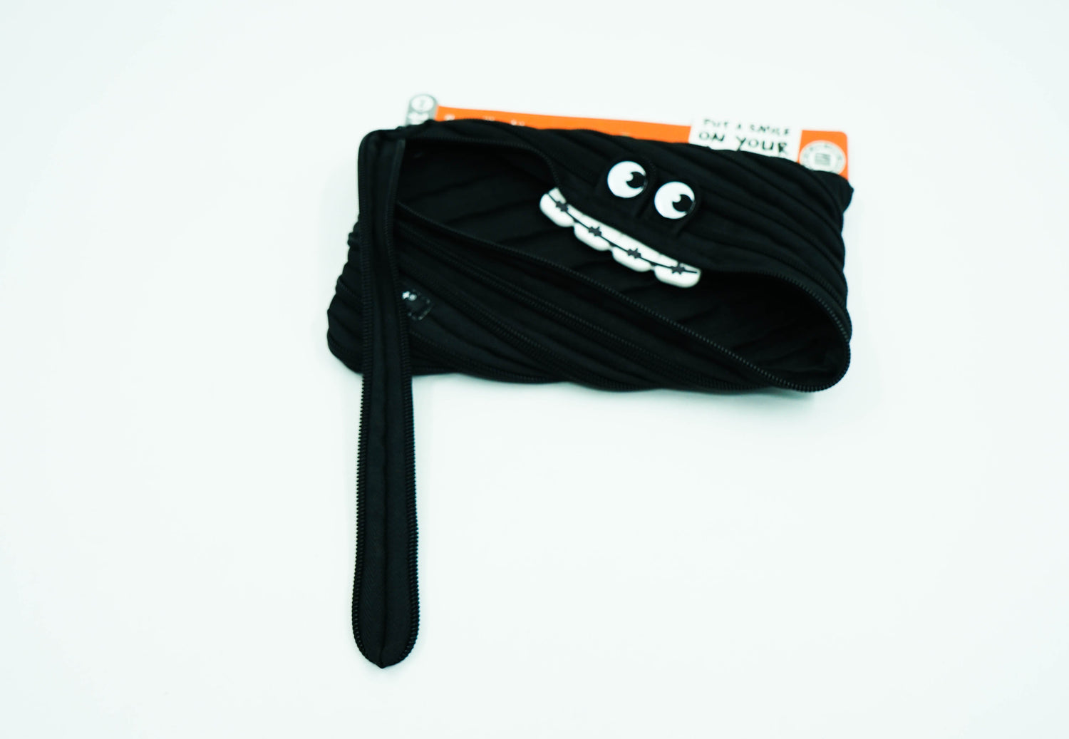 MADE FROM ONE LONG ZIPPER - This pencil case features our clever, one-zipper design so it can be fully zipped and unzipped for an added element of fun. The extra wide diagonal opening means you can effortlessly see and access everything you’ve stored inside. Bright eyes and rubber teeth are a guaranteed hit with kids of all ages.