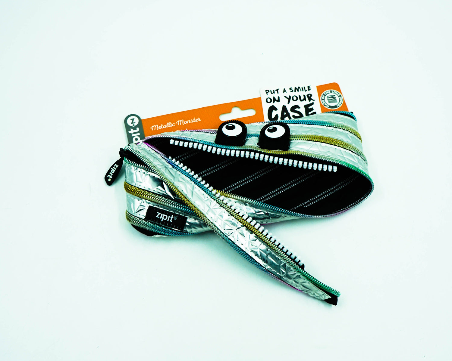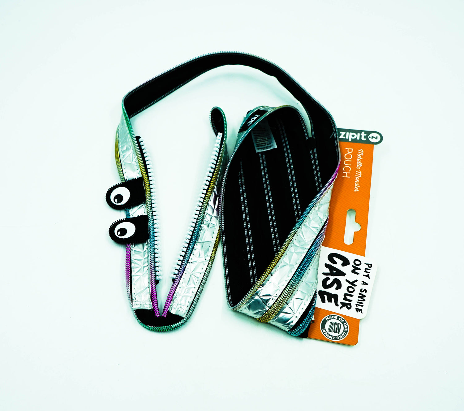 A twist on our most popular pouch. Made using a special metallic material for an edgy combination of texture and shine. Excellent for holding a variety of items from makeup to school supplies.