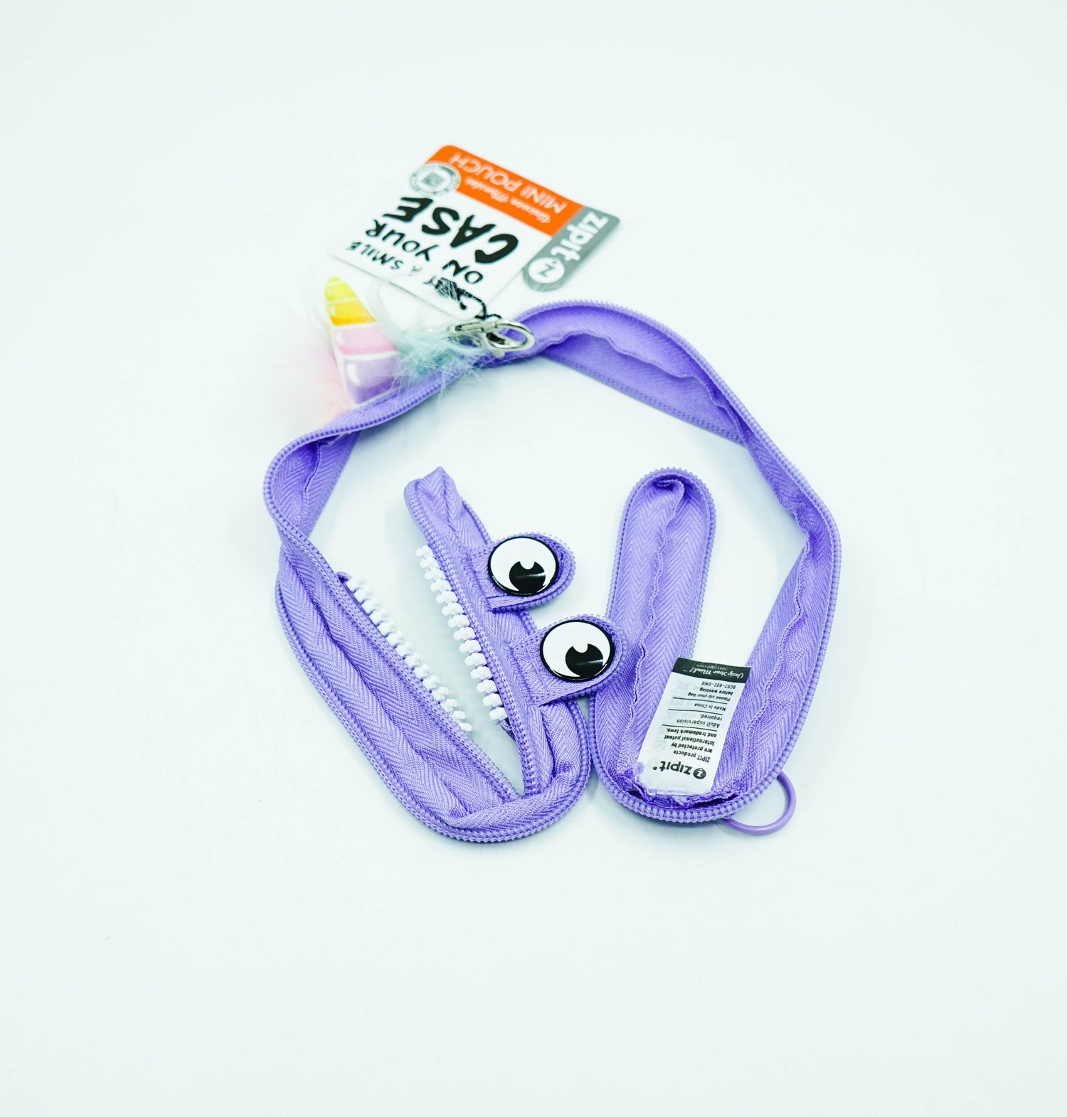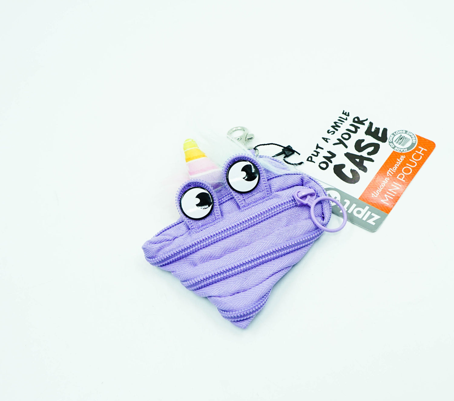 ONE LONG ZIPPER - Clever design features one long zipper that can be fully zipped and unzipped. Comes with a diagonal opening for easy access plus a silver clasp to attach to your backpack, keys or belt.