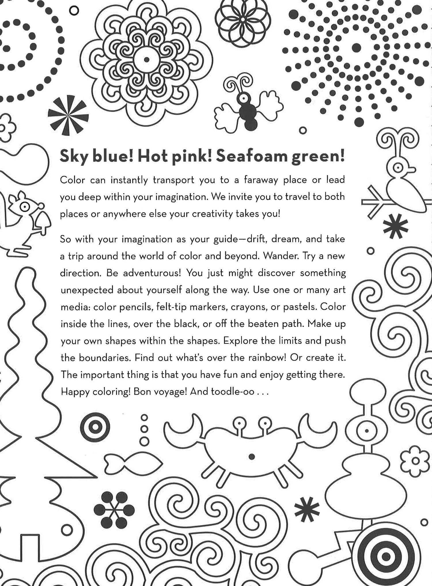 Color some sunshine into your life with this summer-themed doodling book from Zolocolor! Whether you're feeling summer's heat or longing for it, this deluxe doodling book is the perfect way to take a little time off and explore creative expression. Simple yet bold shapes come together to invoke images of all things summer, such as flowers in bloom, ocean life, fluttering insects, and much more! The pages are adorned with scenes ranging from elaborate and busy to simple and quiet, inviting children (and adults!) to color in, out, on, and around the lines. So get out your colored pencils, chalk, paint, pens, or crayons, and draw from your vibrant imagination. Dabble. Dream. Imagine. Make it your own!