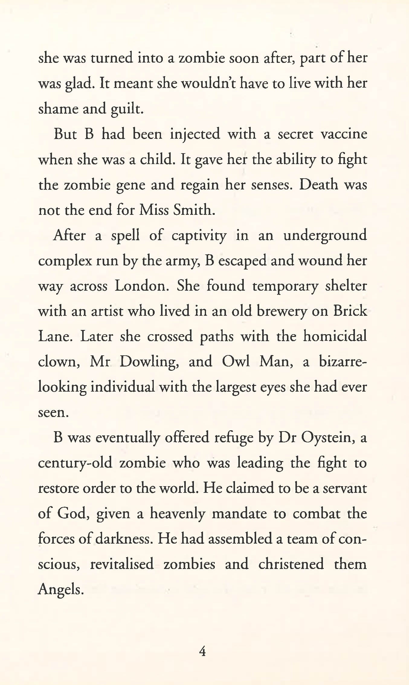 What has happened to the world since the dead took over? Where have the humans gone to hide? Who do the living most have to fear? B Smith is heading for unknown territory...Leading a group of humans through London and out into zombie-infested suburbs sounds like suicide - but not for the undead! Even so, the horrors of the journey will be beyond anything B has yet seen ...'Do not underestimate the dangers of this mission. Other zombies will not ignore you when they catch the scent of fresh brains. You will almost surely be called upon to fight. The city and countryside are full of angry, bitter people who are trying to execute as many of the undead as they can. They will not distinguish between a revitalised and a revived. Most do not know there is a difference. And most would not care.