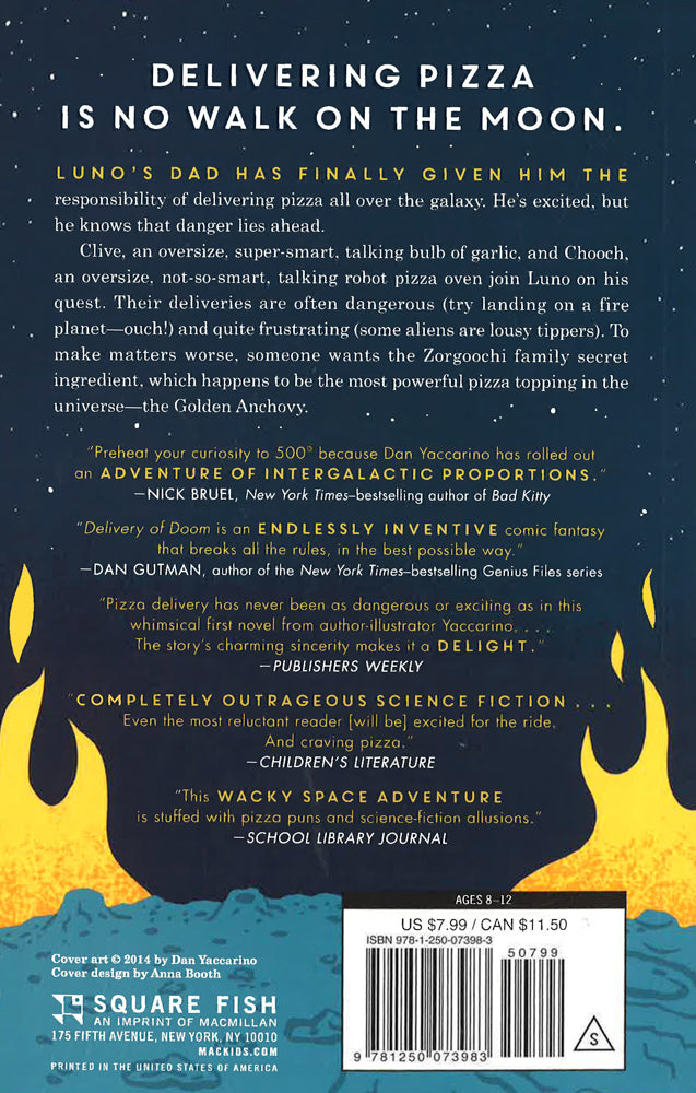 When Luno's dad FINALLY gives him the responsibility of delivering pizza orders all over the galaxy, Luno is excited, mostly. He knows that delivering pizza is no walk on the moon. There are hostile customers, and there's always the threat of his deliveries being intercepted by Quantum Pizza, the fast-growing chain restaurant that will do anything to put indies like Zorgoochi Intergalactic out of business.